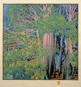 Baumann returned to Chicago in December 1905 and by 1909 he and other members of the Palette and Chisel Club discovered Brown County, Indiana. Saving up $100.00 he could spend three months in Brown County, sketching and painting. In 1910 he produced a portfolio of small format color woodcuts entitled In the Hills of Brown and then produced some of the largest woodcuts of the time. His color woodcuts were selected for inclusion in the 1915 Panama Pacific International Exposition where he won the Gold Medal for Prints and an Honorable Mention for his Exhibit of Color Woodcuts. In the summer and fall of 1917, Baumann visited Wyoming, New York; Manhattan; and Provincetown, Massachusetts.