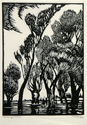 Ten years later Rice relocated to the San Francisco Bay Area, seeking an opportunity to become more involved in one of the West Coast's leading Arts and Crafts hubs. He was a part of the Berkeley Art Colony and participated in their Exhibition of California Artists show at the Hillside Club in 1911. After touring Europe in the summer of 1913, he expanded his exposure to printmaking techniques, and that year he took a course in woodblock techniques taught by Ralph H. Johonnot, an associate of Arthur Wesley Dow. As well, he pursued intaglio printmaking, working in drypoint and etching to produce images of his adopted county. Two years later, he found further inspiration in the Japanese woodcuts shown at the 1915 Panama-Pacific International Exhibition. This cemented his desire to become a woodcut artist, and in 1918 he held his first major exhibition of linocuts and woodcuts at the Palace of Fine Arts, San Francisco. In 1933, he was awarded "Best Print" by the California Society of Etchers.
