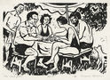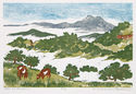 After receiving his BFA in 1949, Ryden completed his MFA at the California College of Arts and Crafts in Oakland, with a minor in education. Early on, he worked mainly in sculpture, an interest that continued throughout his career. Having studied intaglio techniques in Colorado, his interest in printmaking was renewed in 1960 when he discovered woodcuts. His love of nature and its connection to human life led to many woodcuts, including a black and white series on the subject of water, executed in the 1980s.