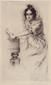 Painter, illustrator, and printmaker Otto J. Schneider was born in Atlanta, Logan County, Illinois in 1875. His family moved to Chicago when he was twelve and later studied at the Art Institute of Chicago. He worked as an illustrator in Chicago before heading to study at the Art Students League in New York, and Academie Julian in Paris. Schneider was, with Bertha Jaques, Ralph Pearson and Earl Reed, one of the founders of the Chicago Society of Etchers in 1909. He was referred to in some publications as the "American Helleu" because of portraits of women dressed in finery. He later became known for his portraits of notable men, including Abraham Lincoln, Mark Twain, and Theodore Roosevelt, to name a few.