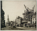 Etcher, draughtsman, illustrator, and painter known for his architectural studies and compositions, Ian Strang was born on April 11, 1886 in London. Son of Scottish artist William Strang, and brother of artist David Strang, he studied at the Slade School of London under Henry Tonks and Frederick Brown from 1902 to 1906, and then at the Academie Julian under J.P. Laurens (1906-1908). He also visited and studied in Italy, Belgium, Spain and Sicily, and held his first solo exhibition at the Goupil Gallery in 1914. That same year he served in World War I in the Middlesex and Royal Berkshire Regiments, fighting in battles in the infantry and then working as a camouflage officer until his demobilization in1919, during which he produced many works. After the war he returned to civilian life, where he once more began pursuing his art career.