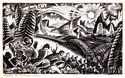 Paul Bough Travis, painter, printmaker, and teacher, was born 2 January 1891 in Wellsville, Ohio and was raised on his family’s farm just outside of town. In 1913 he enrolled at the Cleveland School of Art (now the Cleveland Institute of Art), where he studied under Henry Keller and graduated in 1917 with a degree in illustration. At the onset of World War I, Travis enlisted in the army and was first trained as a machine gunner. Once his artistic talent was noted, he was transferred to do survey work and he remained in Le Mans, France for the remainder of the war.