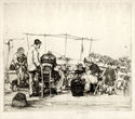Departing for Europe in 1922, Winkler lived first in Paris and then in London over a period of seven years, sketching and drawing as he went. He not only drew cities and villages, but he appears to have visited the Lascaux caves of Dordogne with their Paleolithic-era wall paintings, as well, which would inspire a series of conte-crayon drawings of the subject. After returning to California in 1928 he reworked many of his city and country life images for etchings, and then focused his attention on California landscapes, creating a series of images of the Sierra Nevadas. Additionally, he began studying woodworking, which would replace printmaking for a time. In the early 1970s, he revived his interest in the etching medium, though many of these were not published before his death.
