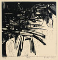 Edmond Casarella was elected a National Academician of the National Academy of Design and his prints, paintings and sculpture have been included in a score of exhibitions in the United States and Eastern Europe, including the seminal "Young American Printmakers" exhibition at the Museum of Modern Art, 1952. Casarella’s work is represented in the collections of the the Whitney Museum, the Brooklyn Museum, and the Library of Congress, New York; the Smithsonian American Art Museum and the National Gallery of Art, Washington, D.C.; the Cleveland Museum of Art, Ohio; the Seattle Art Museum, Washington; the Speed Art Museum, University of Louisville, Kentucky; the Chazen Museum of Art, University of Wisconsin, Madison; the Worcester Art Museum, Massachusetts; the Greek National Museum in Athens; and the Australian National Museum, Canberra;