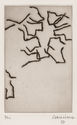 By the early 1980s Chillida's sculpture had gained an international following and his work could be found in prominent locations in San Sebastian, Barcelona, Paris, Frankfurt, Berlin, Washington, D.C., Dallas, and more. Among these works were landscape installations requiring extreme engineering feats, with massive iron pieces suspended between quarry walls; emerging from a cliffside; bored and chiseled into the ground in descending, labryinthine paths. Meanwhile, he continued to work on small-scale, one dimensional imagery using paint, woodcut, intaglio, and ink. His graphic works were exhibited in major restrospectives at the National Gallery in Washington, D.C. (1979); the Solomon R. Guggenheim Museum (1980); Palacio de Miramar, San Sebastian (1992); the Museo Nacional Centrode Arte Reina Sofia, Madrid (1999), and the Guggenheim Museum, Bilbao, Spain (1999).